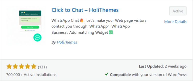 If you’re using WordPress, you can add a WhatsApp widget in seconds using a WordPress plugin called ‘Click to Chat’.